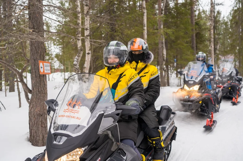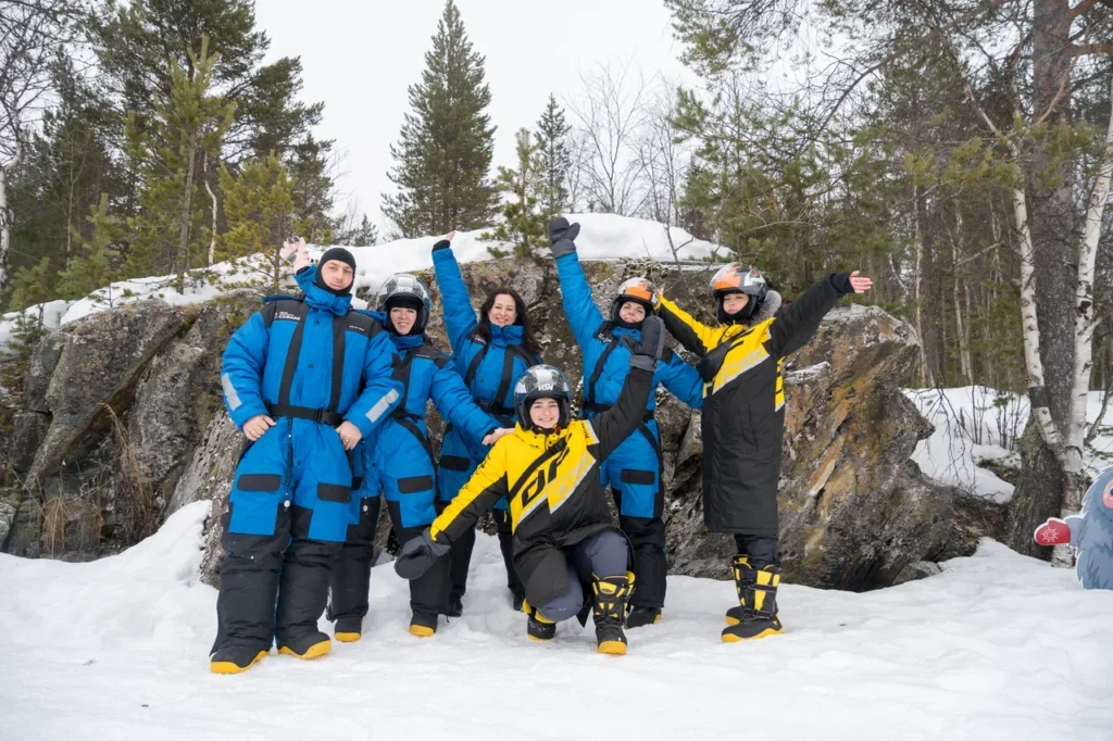 Снегоходные прогулки сопровождают инструкторы (гиды) с опытом управления зимней техникой более сотни часов. Проводится обучение азам езды, а также инструктаж и тест-драйв перед выездом.