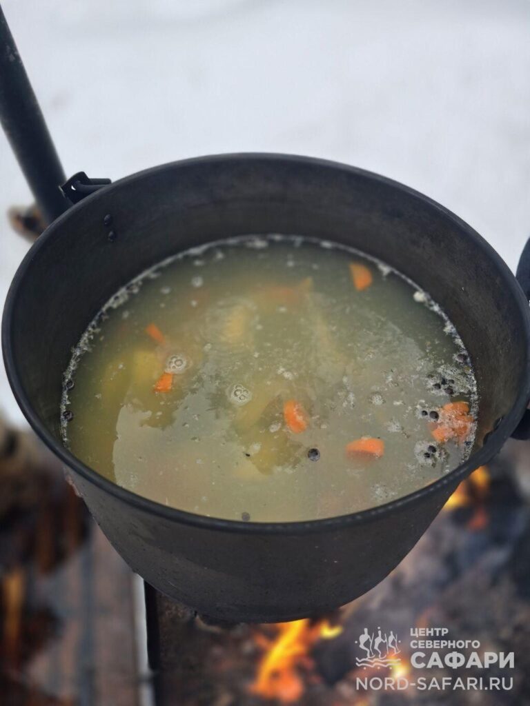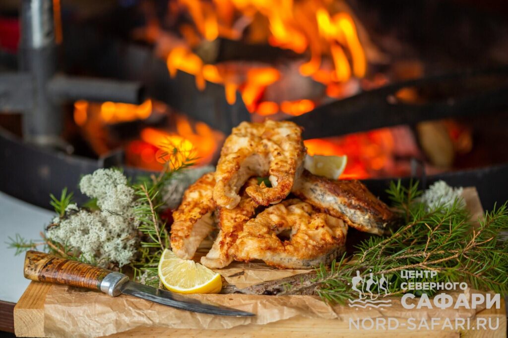13.00 — обед у костра. Ваш улов станет основой наваристой ухи, приготовленной прямо на открытом огне. Особую пикантность блюду придадут сорта местной благородной рыбы.