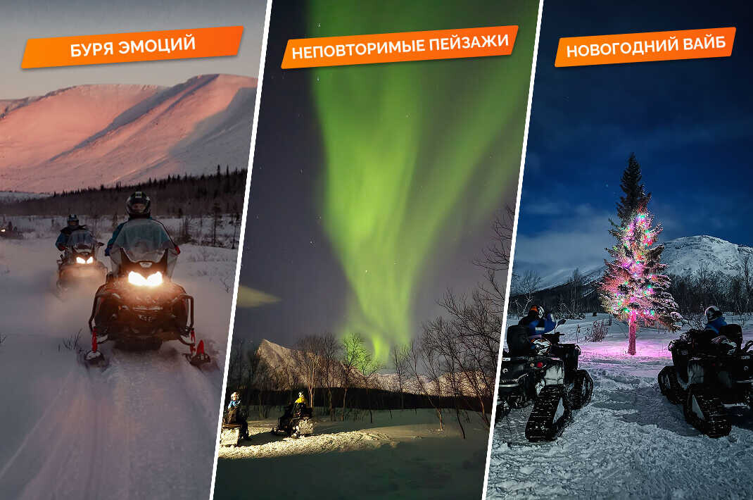 - старт от санаторно-оздоровительного комплекса «Тирвас»; перед поездкой — инструктаж и полная экипировка: тёплый комбинезон, ботинки, варежки, чистый подшлемник и шлем с защитой;