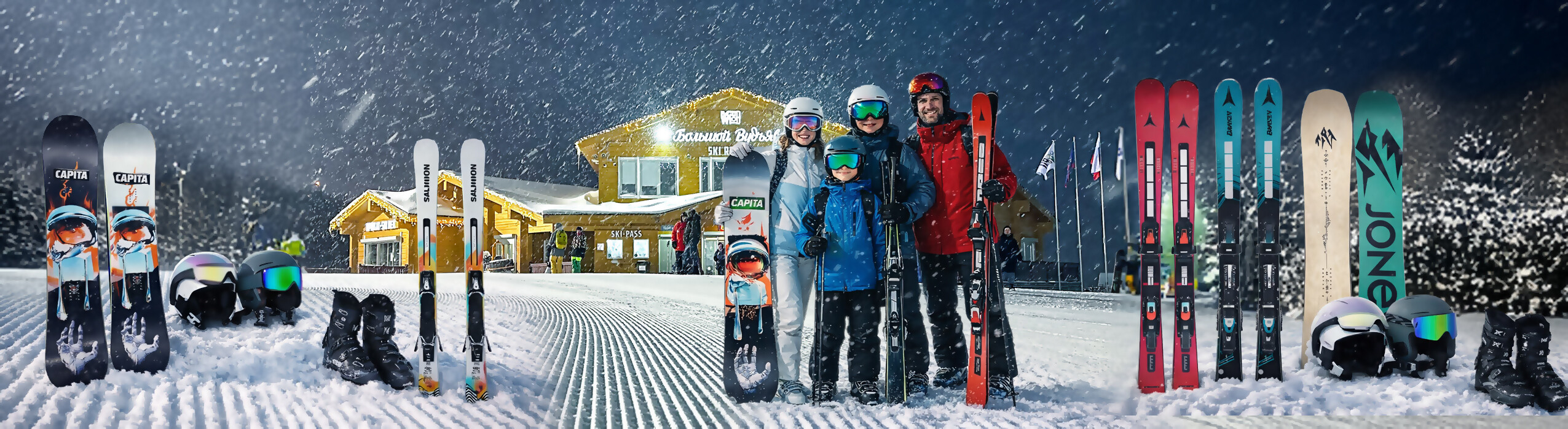 Прокат лыж и сноубордов на курорте «Большой Вудъявр» в Кировске (Хибины).